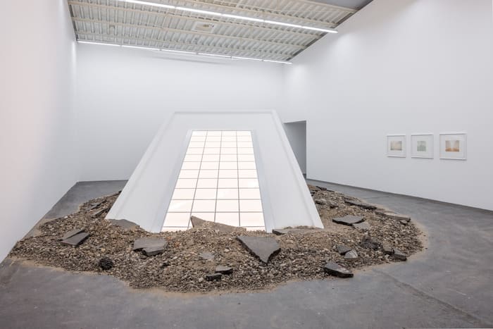 Die Präsentation beginnt mit der Skulptur „Protruding Gallery / Powerless Structures, Fig. 223“ (2024) von Elmgreen & Dragset. Diese Arbeit stellt einen Kunstraum dar, der entweder aus dem Boden aufsteigt oder darin versinkt. In der Serie „Deutsche Museen“ (2025) hinterfragt das Künstlerduo ebenfalls die räumlichen Strukturen und die Institution des Museums.