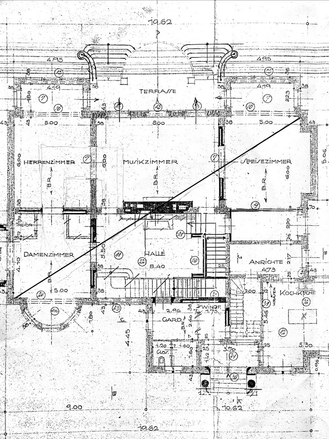 Image caption: Villa Knobloch, heute Haus am Waldsee, Grundriss 1923, Modifizierung durch Richard Venlet, 2026, Courtesy der Künstler
